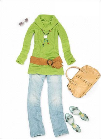 绿色长衫搭配棕色短裤,和谐的颜色再添一款包包,令你看上去时尚感十足。
