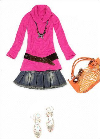 粉红色点亮一天的好心情。宽腰带成为全身的亮点。
